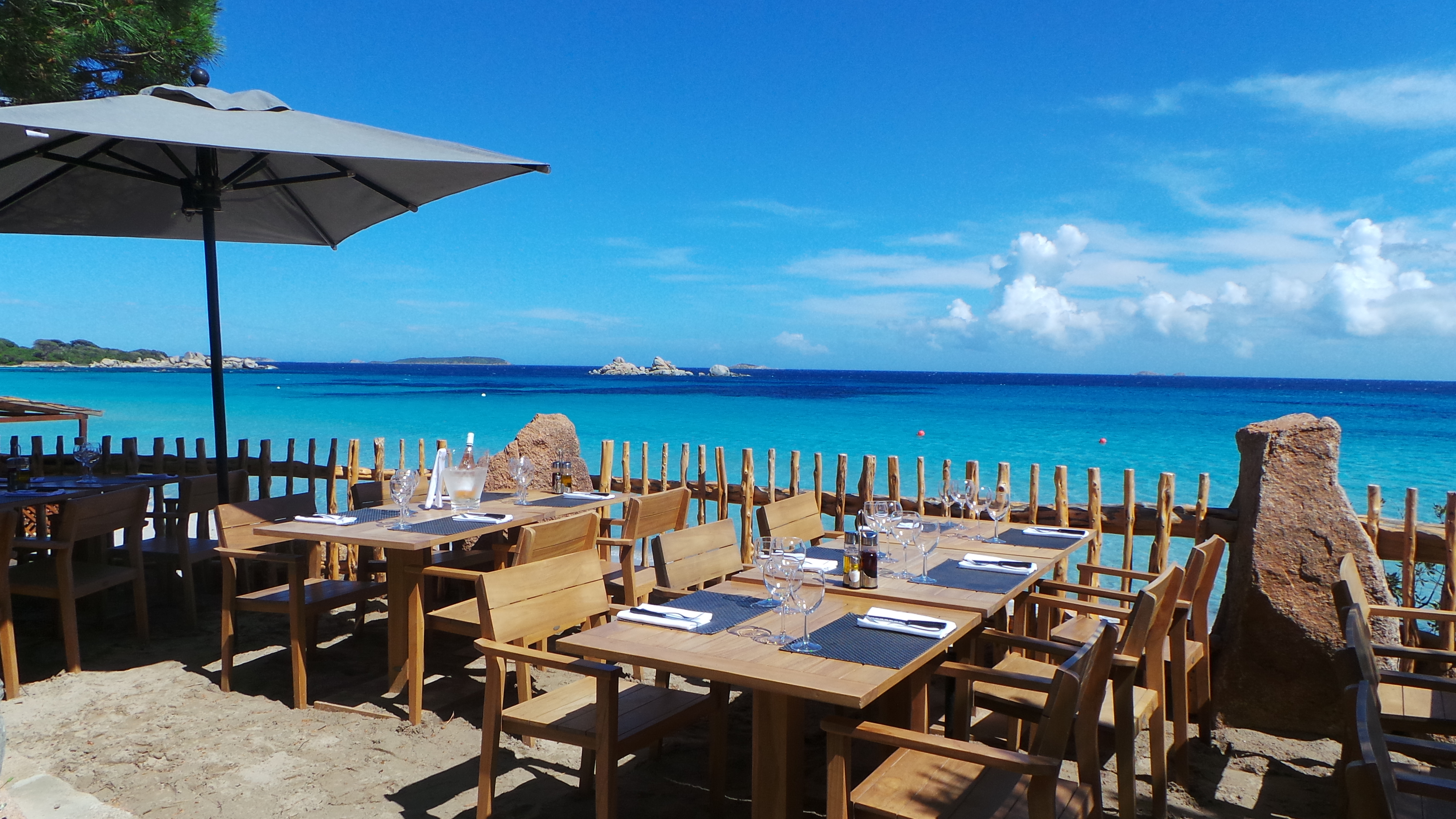 de mer au restaurant Le Petit Chose Situé directement sur la plage de Palombaggia, pour profiter des plages en toute simplicité.